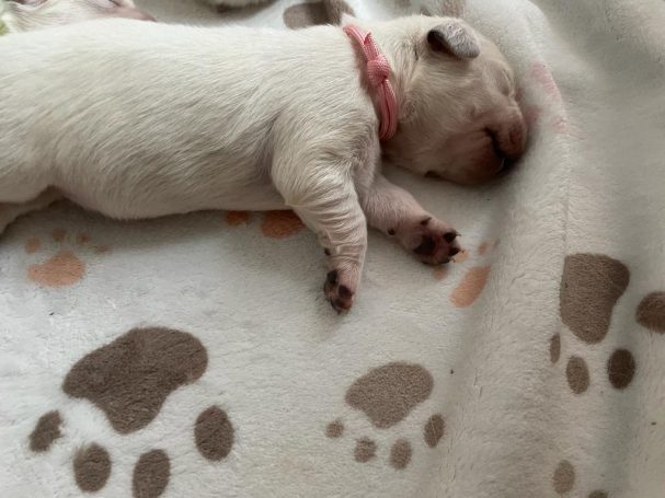 Mit ihrer tollen Ausstrahlung, ihrem sanften Charakter und ihrer exzellenten Abstammung bringt sie alles mit, um eines Tages ebenso wundervolle Welpen großzuziehen. Wir sind dankbar, sie an unserer Seite zu haben, und freuen uns auf die Zukunft mit ihr.